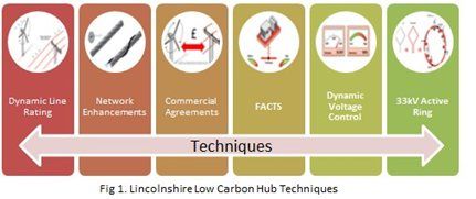 Dynamic Voltage Control (DVC) algorithm, has been incorporated within WPD’s Network Management Software (NMS). It optimises the network voltage using key voltage and current measurement points across the East Lincolnshire network. Both existing Automatic Voltage Control (AVC) relays at Skegness Grid Substation and communications infrastructure have been modified to accept automated remote target voltage changes directly from the NMS. The DVC method can optimise the voltage profile very effectively balancing both demand and generation requirements to unlock capacity.